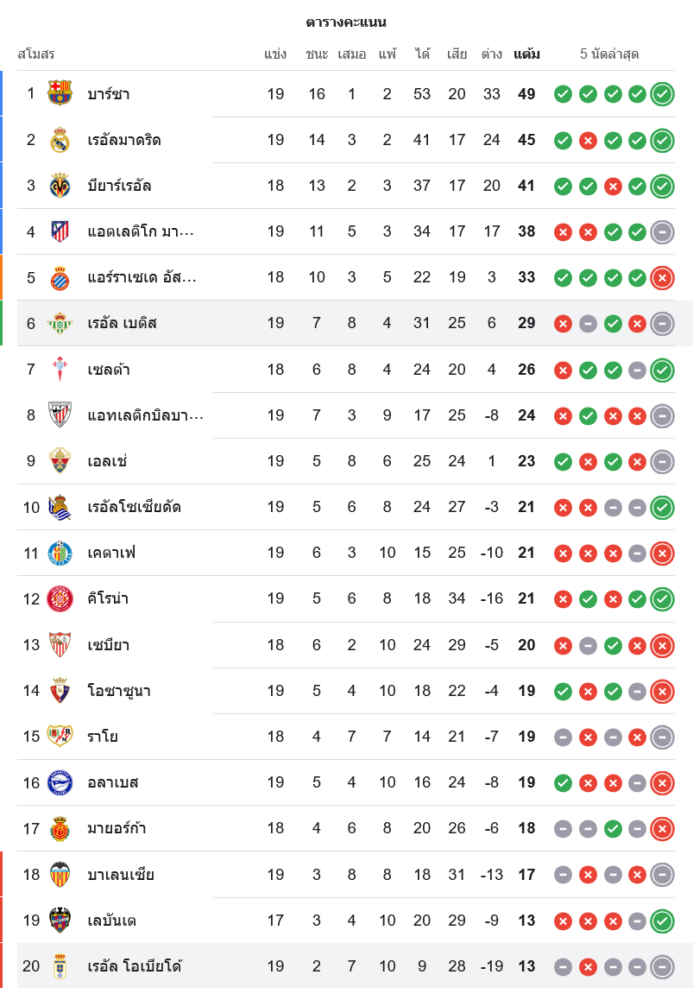 📌 สถานการณ์ในตารางคะแนนลาลีกา สเปน
