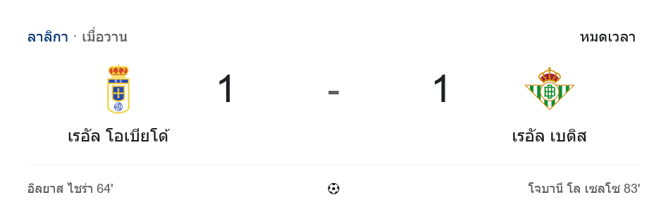 - 🔔 จบเกม เรอัล โอเบียโด้ เสมอ เรอัล เบติส 1-1