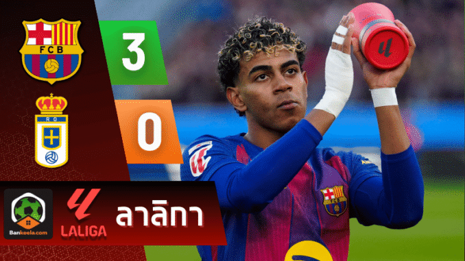 ศึก ลาลีกา สเปน ที่คัมป์ นูใหม่ บาร์เซโลน่าเดินหน้ากดดันใส่ เรอัล โอเบียโด้ จนเกมรับทีมเยือนพังยับ จบ 90 นาที “เจ้าบุญทุ่ม” ไล่ถล่ม 3-0 เก็บสามแต้มสำคัญ พร้อมรักษาสถานะจ่าฝูงต่อไปแบบแน่นๆ แฟนที่ตามเช็ก ผลบอลสด กับบ้านกีฬาได้เฮดังทั้งเมือง