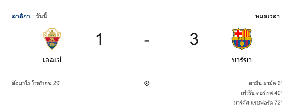 จาก : ผลบอลสด ลาลีกา สเปน ระหว่าง เอลเช่ 1-3 บาร์เซโลน่า วันนี้ 1/2/69 – บ้านกีฬา