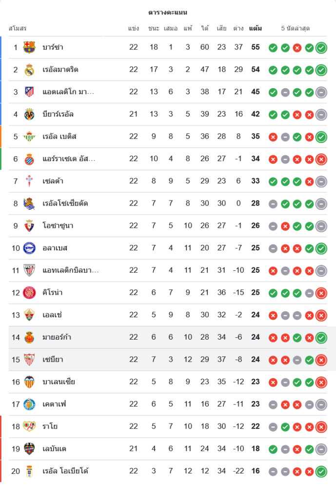 📊 สถานการณ์ในตารางคะแนนลาลีกา