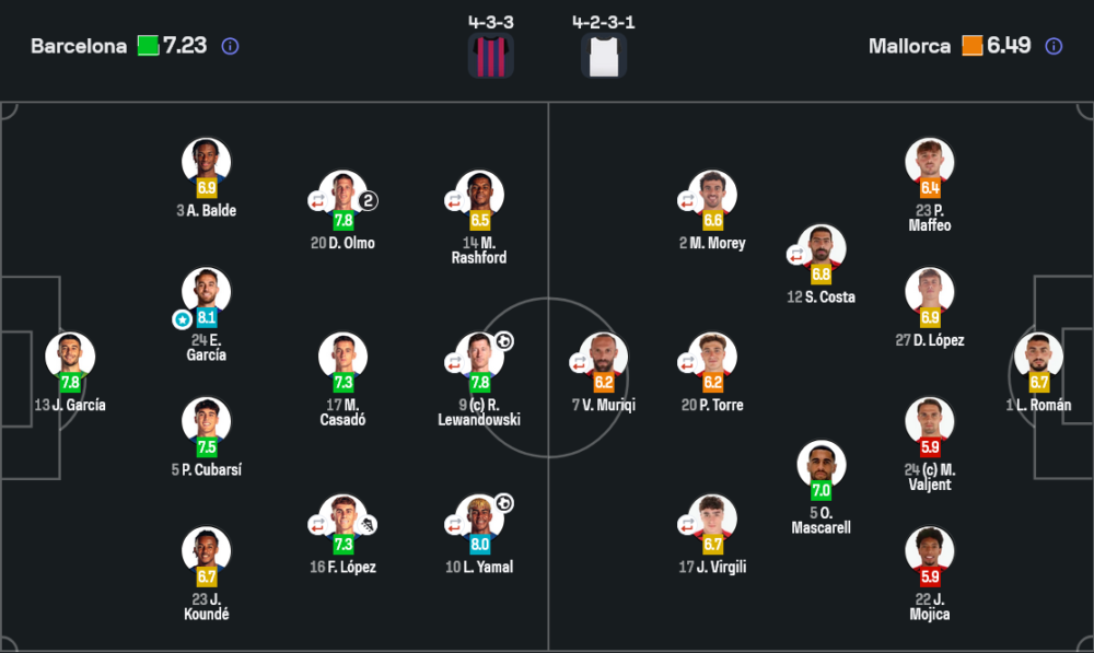 - ลามีน ยามาล (10) – 8.0 ปั่นประตูสุดสวยครึ่งหลัง ปั่นโซนขวาของมายอร์ก้าเละ