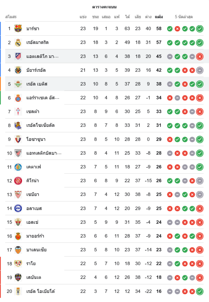 📊 สถานการณ์ในตารางคะแนนลาลีกา สเปน