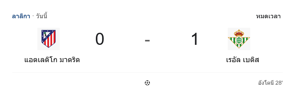 ศึก ลาลีกา สเปน ที่ว่านต๋า เมโตรโปลิตาโน่ กลายเป็นค่ำคืนที่แฟนตราหมีต้องกุมขมับ เมื่อแอตเลติโก มาดริด เปิดบ้านพ่าย เรอัล เบติส 0-1 ทั้งที่รูปเกมบุกใส่แทบจะฝ่ายเดียว สกอร์บนหน้าจอและหน้าเว็บเช็ค ผลบอลสด อาจดูเฉียบขาดแค่ประตูเดียว แต่เนื้อในคือดราม่าหนักตั้งแต่นาทีแรกจนวินาทีสุดท้าย บ้านกีฬา ขอสรุปทุกจังหวะให้แบบละเอียดจัดเต็ม
