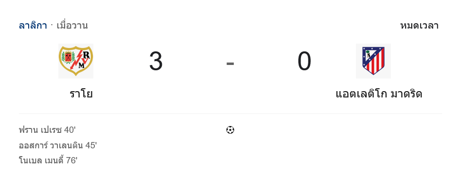 • ⚽ หมดเวลา ราโย บาเยกาโน่ เปิดบ้านถล่ม แอตเลติโก มาดริด 3-0 สร้างหนึ่งในผลการแข่งขันสุดช็อกของซีซัน