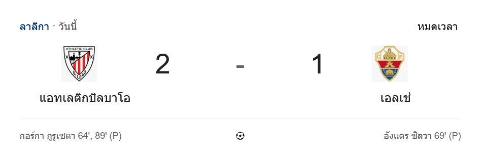 • ⏱️ หมดเวลา แอธเลติก บิลเบา 2-1 เอลเช่