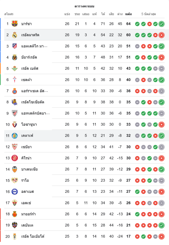 สถานการณ์ในตารางคะแนนลาลีกา ผลสะเทือนการลุ้นแชมป์และพื้นที่กลางตาราง