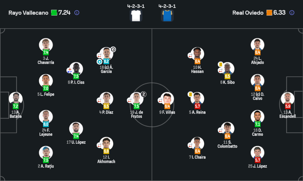 - 65’ Fran Pérez 6.9 แทน Jorge de Frutos