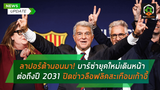 บาร์เซโลนายืนยันผลการเลือกตั้งประธานสโมสรครั้งล่าสุดอย่างเป็นทางการแล้วว่า โจน ลาปอร์ต้า ได้รับความไว้วางใจให้กลับมาบริหารทีมต่อเป็นสมัยที่ 4 เรียบร้อย โดยประธานวัย 63 ปี ซึ่งลงชิงตำแหน่งอีกครั้งหลังหมดวาระการทำงานช่วงปี 2021 ถึง 2026 จะอยู่กุมบังเหียนของสโมสรต่อไปจนถึงปี 2031