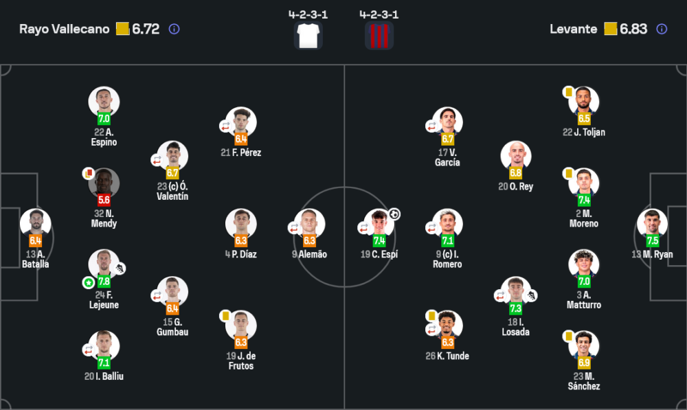ฟลอริย็อง เลอเฌิน คือคนที่ประคองราโยเอาไว้ในเกมที่กดดันสุดขีด เขาเล่นเกมรับได้แข็งแกร่ง อ่านจังหวะดี และยังเติมขึ้นมามีส่วนกับประตูตีเสมอโดยตรงจากแอสซิสต์ให้ ปาเต้ ซิสส์ จบสกอร์ คะแนน 7.8 สะท้อนชัดว่าเขาคือผู้นำตัวจริงของเจ้าถิ่นในค่ำคืนที่ทีมต้องสู้ทั้งเกมและสู้ทั้งสถานการณ์