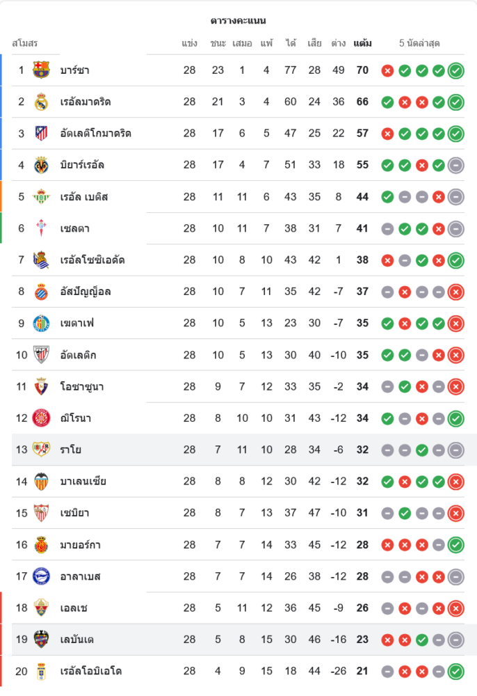 สถานการณ์ในตารางคะแนนลาลีกา
