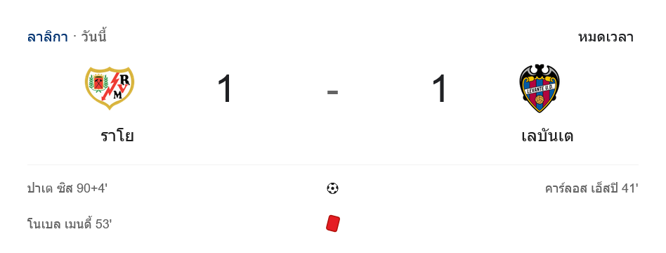 จาก : ผลบอลสด ลาลีกา สเปน ระหว่าง ราโย บาเยกาโน่ 1-1 เลบันเต้ วันนี้ 17/3/69 – บ้านกีฬา