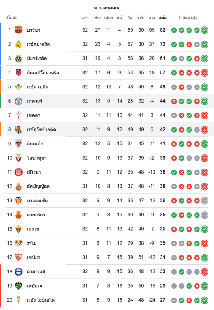 สถานการณ์ในตารางคะแนนลาลีกา