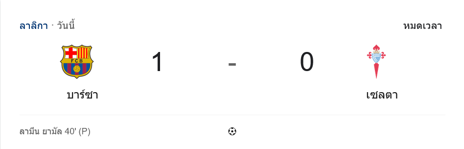 • ⏱️ หมดเวลา บาร์เซโลน่า ชนะ เซลต้า บีโก้ 1-0