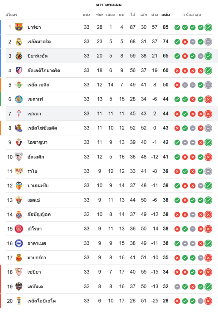 สถานการณ์ในตารางคะแนนลาลีกา สเปน