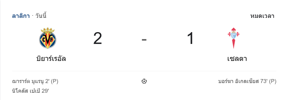 จาก : ผลบอลสด ลาลีกา สเปน ระหว่าง บียาร์เรอัล 2-1 เซลต้า บีโก้ วันนี้ 27/4/69 – บ้านกีฬา
