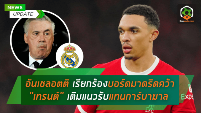 คาร์โล อันเชลอตติ กุนซือจอมวางแผนแห่งทีม เรอัล มาดริด ออกมาเรียกร้องบอร์ดบริหารและ ฟลอเรนติโน่ เปเรซ ประธานสโมสร ให้รีบดำเนินการด่วนเพื่อคว้าตัว เทรนต์ อเล็กซานเดอร์-อาร์โนลด์ แบ็กขวาตัวเก่งจาก ลิเวอร์พูล มาร่วมทัพ หลังจากสถานการณ์ในตำแหน่งแนวรับขาดแคลน เนื่องจากอาการบาดเจ็บหนักของ ดานี่ การ์บาฆาล ที่ทำให้ทีมต้องเร่งหาตัวแทนในช่วงตลาดซื้อขายเดือนมกราคมที่จะถึงนี้