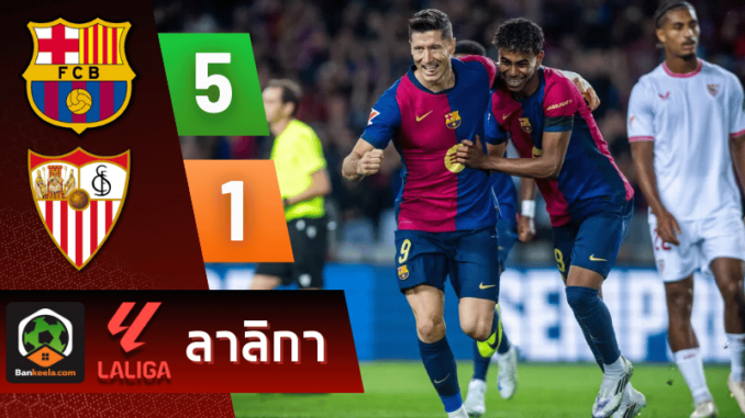 ไฮไลท์บอลลาลิกา 2024 บาร์เซโลน่า 5-1 เซบีย่า วันนี้ 21/10/67 – บ้านกีฬา