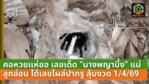 - บุกป่าล่าขุมทรัพย์! คอหวยแห่ขอ เลขเด็ด “นางพญาบึ้ง” แม่ลูกอ่อน ได้เลขโผล่ปากรู ลุ้นงวด 1/4/69