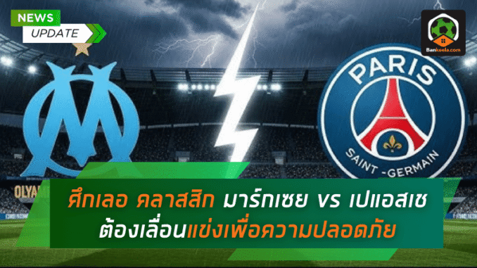 ค่ำคืนที่แฟนบอลทั่วโลกตั้งตารอคอยอย่างศึก เลอ คลาสสิก ระหว่าง โอลิมปิก มาร์กเซย เปิดบ้านดวล ปารีส แซงต์-แชร์กแมง ต้องถูกเลื่อนออกไปแบบสุดช็อก หลังสภาพอากาศในแถบจังหวัดบุช-ดู-โรน ทางตอนใต้ของฝรั่งเศสถูกพายุลูกใหญ่ถล่มอย่างหนัก จนมีความเสี่ยงสูงที่สนาม สต๊าด เวโลโดรม ความจุ 65,000 ที่นั่ง จะเผชิญกับน้ำท่วมฉับพลัน