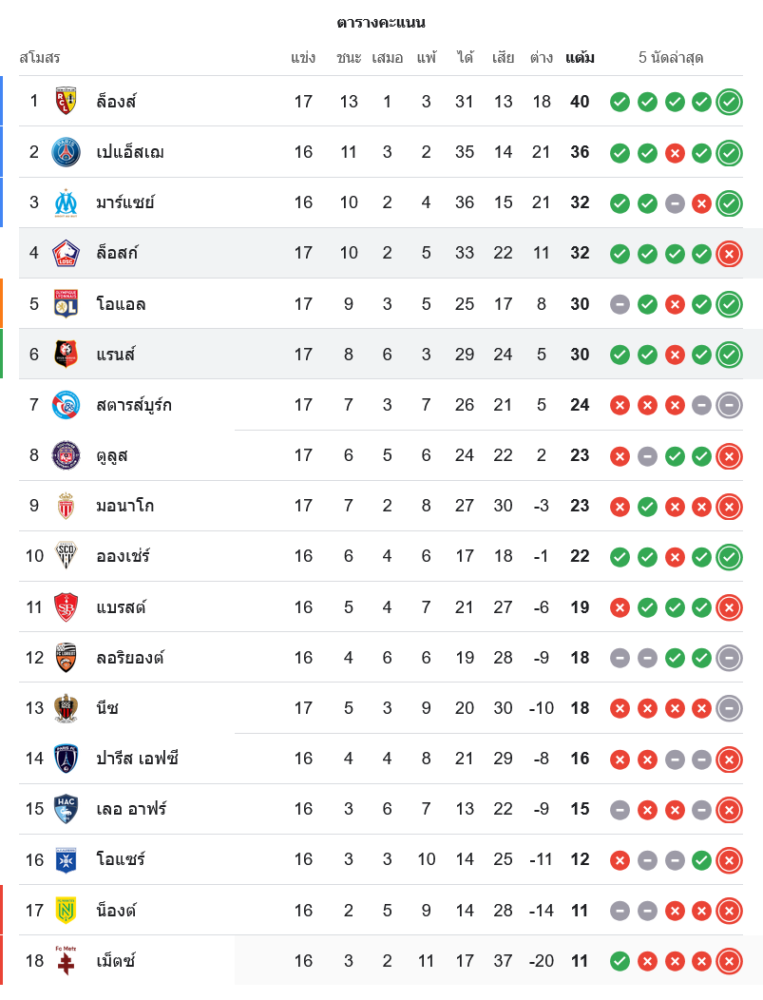 ด้านแรนส์กระโดดขึ้นมาที่อันดับ 6 มี 30 คะแนนจาก 17 นัด ลูกได้เสีย +5 เท่ากับ โอลิมปิก ลียง ที่อยู่เหนือขึ้นไป แถมฟอร์มช่วงหลังในลีกยังดูไหลลื่นต่อเนื่อง ชัยชนะนัดนี้จึงไม่ใช่แค่สามแต้มธรรมดา แต่เป็นการส่งสัญญาณว่าพวกเขาพร้อมเบียดชิงพื้นที่หัวตารางแบบเต็มตัวแล้ว