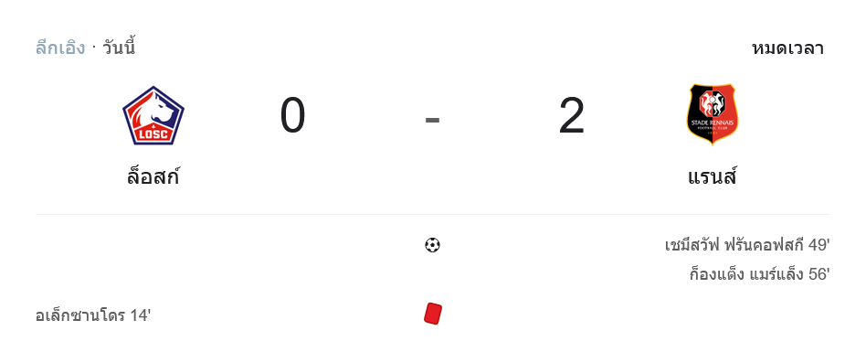 ค่ำคืนนี้แฟนบอล ลีกเอิง ที่นั่งเฝ้าหน้าจอเช็ก ผลบอลสด คงรู้สึกเหมือนกันว่าเกมที่ฝรั่งเศสไม่ธรรมดาเลย ลีลล์เปิดบ้านเจอแรนส์ในสถานการณ์ที่ทั้งสองทีมกำลังล่าแต้มบนหัวตาราง แต่เจ้าบ้านดันพลาดตั้งแต่ไก่โห่ เหลือ 10 คนตั้งต้นเกม ทำให้รูปเกมพลิกจากที่ควรจะเป็นดวลเพลย์เมกเกอร์ กลายเป็นหนังดราม่าที่แนวรับลีลล์ต้องวิ่งไล่ตัดเกมเกือบทั้ง 90 นาที ก่อนจะโดนทีมเยือนลงโทษสองดอกในครึ่งหลัง แรนส์บุกชนะ 0-2 คว้า 3 แต้มใหญ่กลับบ้านแบบแน่นอนและมั่นใจสุดๆ