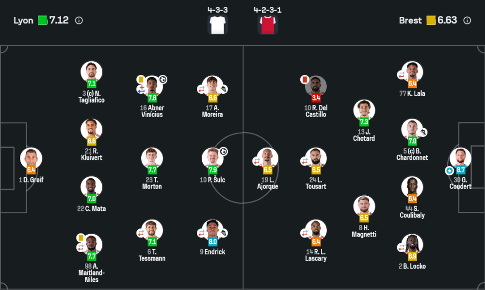 แม้ทีมจะแพ้ แต่รางวัล Man of the Match ต้องยกให้ เกรกัวร์ กูเดร์ต นายด่านแบรสต์ คะแนนสูงถึง 8.7 จากการเซฟสำคัญหลายครั้ง โดยเฉพาะจังหวะปฏิเสธประตูจ่อๆ ของ เอนดริก และลูกโหม่งจากลูกเตะมุมต้นเกม ถ้าไม่มีกูเดร์ตยืนอยู่หน้าเส้น แบรสต์อาจโดนยับเกินสองลูกแน่นอน ฟอร์มระดับนี้ยืนยันว่าฤดูกาลนี้เขาคือหนึ่งในมือกาวที่เสถียรที่สุดของลีกเอิง