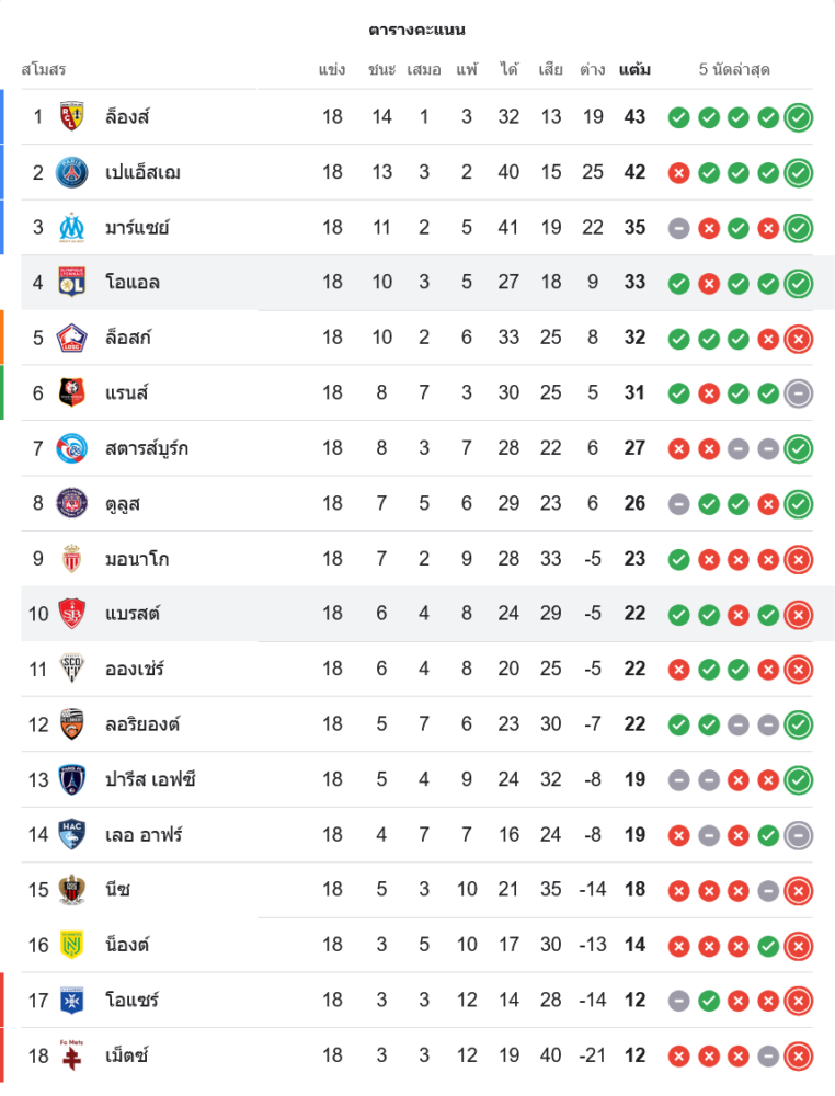 📌 สถานการณ์ในตารางคะแนนลีกเอิง
