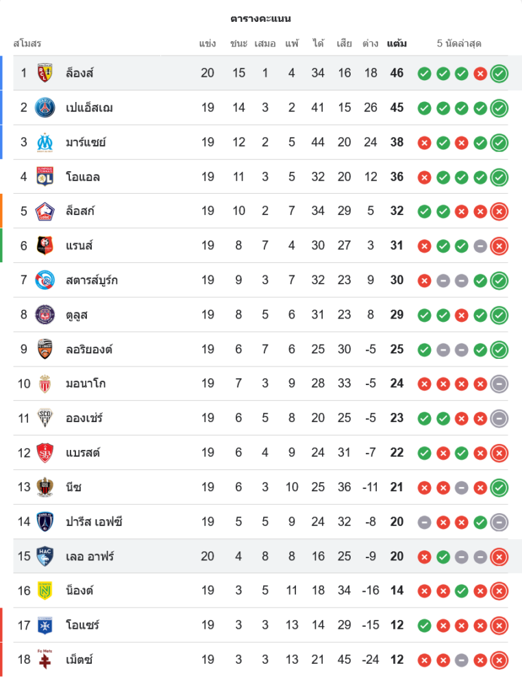 📌 สถานการณ์ในตารางคะแนนลีกเอิง หลังเกมนี้
