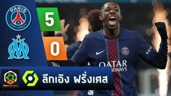 บ้านผลบอล สรุปหลังเกม ลีกเอิงเดือด เปแอสเชโหดจัด! เดมเบเล่กดเบิ้ลพาถล่มมาร์กเซย 5-0 ยึดจ่าฝูงกดดันคู่แข่งลุ้นแชมป์ยาว