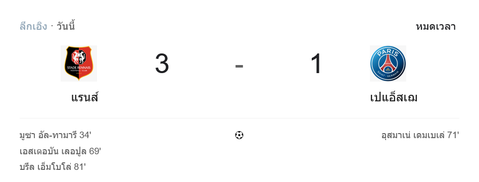 - ⏱️ 90+5′ จบเกม – แรนส์ชนะเปแอสเช 3-1 เก็บสามแต้มใหญ่ในบ้าน