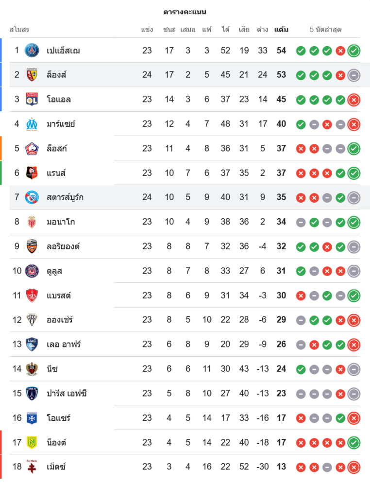 สถานการณ์ในตารางคะแนนลีกเอิง