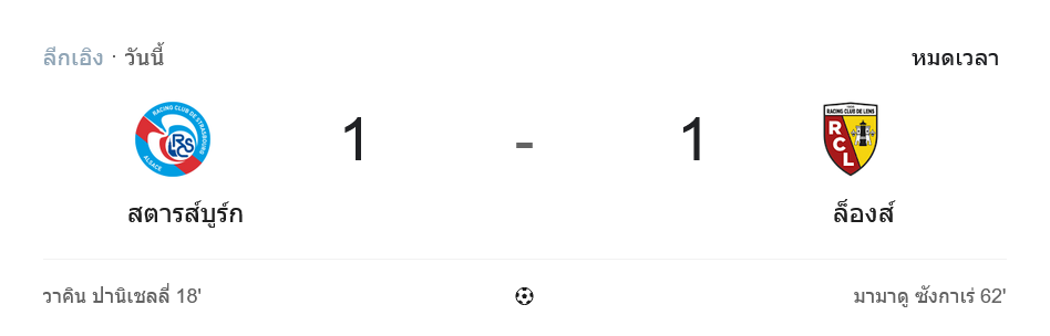 เกมลีกเอิงคู่นี้จบลงแบบแลกกันไฟแลบ สตราส์บูร์กเล่นในบ้านได้ทรงกว่าเรื่องการคุมจังหวะและความแน่นของบอล แต่ล็องส์เป็นสายบุกจริงจัง ยิงเยอะ บี้หนัก จนสุดท้ายปิดบัญชีไม่ลง แบ่งแต้มกันไป 1-1 ในเกมที่ตัวเลข ผลบอลสด บอกเลยว่าเดือดกว่าหน้าสกอร์