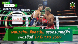 - ผลมวยไทยเดือดสนั่น! สรุปครบทุกคู่ศึกเพชรยินดี 19 มีนาคม 2569 เช็กผลมวยไทยล่าสุดแบบจัดเต็ม
