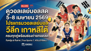 - ดูวอลเลย์บอลสด 5-8 เมษายน 2569 โปรแกรมวอลเลย์บอล วีลีก เกาหลีใต้ ครบทุกคู่พร้อมช่องถ่ายทอดสด