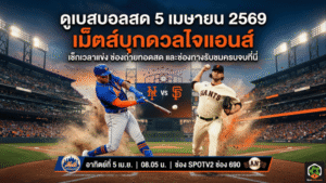 - ดูเบสบอลสด 5 เมษายน 2569 เม็ตส์บุกดวลไจแอนส์ เช็กเวลาแข่ง ช่องถ่ายทอดสด และช่องทางรับชมครบจบที่นี่