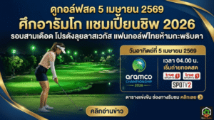 - ดูกอล์ฟสด 5 เมษายน 2569 ศึกอารัมโก แชมเปี้ยนชิพ 2026 เข้ารอบสามเดือด โปรดังลุยลาสเวกัส แฟนกอล์ฟไทยห้ามกะพริบตา