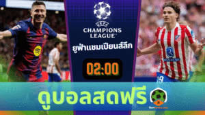 - ดูบอลสดยูฟ่า แชมเปี้ยนส์ ลีก ถ่ายทอดสด บาร์เซโลน่า พบ แอตเลติโก้ มาดริด 8/4/69