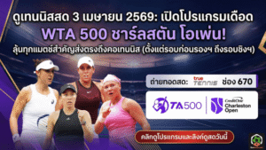 - ดูเทนนิสสด 3 เมษายน 2569 เปิดโปรแกรมเดือด WTA 500 ชาร์ลสตัน โอเพ่น ลุ้นทุกแมตช์สำคัญส่งตรงถึงคอเทนนิส