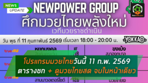 - โปรแกรมมวยไทยวันนี้ 11 ก.พ. 2569 เดือดครบทุกคู่! รวมตารางชก + ช่องทาง ดูมวยไทย สด และเช็ก ผลมวยไทย จบในหน้าเดียว