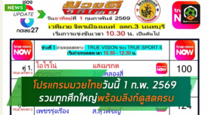 - คอหมัดห้ามกระพริบตา! โปรแกรมมวยไทยวันนี้ 1 ก.พ. 2569 รวมทุกศึกใหญ่พร้อมลิงก์ดูสดครบ
