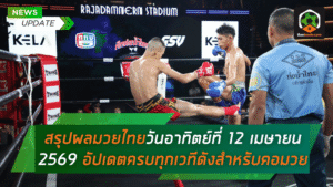 - เช็กให้ครบทุกศึก! สรุปผลมวยไทยเดือดวันอาทิตย์ที่ 12 เมษายน 2569 อัปเดตครบทุกเวทีดังสำหรับคอมวยตัวจริง