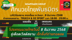 - โปรแกรมมวยไทยวันนี้ 8 ธันวาคม 2568 คู่เดือดเวิลด์สยาม เช็กลิ้งก์ถ่ายทอดสดครบจอ