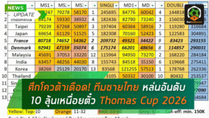 - ศึกโควต้าเดือด! ทีมชายไทย หล่นอันดับ 10 ลุ้นเหนื่อยตั๋ว Thomas Cup 2026