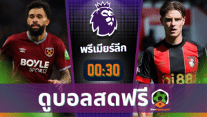 - ดูบอลสดพรีเมียร์ลีก อังกฤษ ถ่ายทอดสด เวสต์แฮม พบ บอร์นมัธ 21/2/69