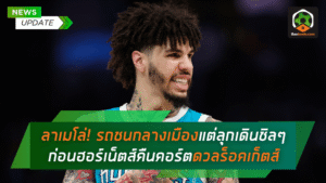 - ลาเมโล่รอดซวย! รถชนกลางเมืองแต่ลุกเดินชิลๆ ก่อนฮอร์เน็ตส์คืนคอร์ตดวลร็อคเก็ตส์