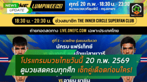 - โปรแกรมมวยไทยวันนี้ 20 ก.พ. 2569 ลิ้งก์ดูมวยสดครบทุกศึก เช็กคู่เดือดก่อนใคร!
