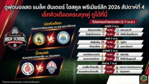 - ดูฟุตบอลสด แบล็ค ฮันเตอร์ ไฮสคูล พรีเมียร์ลีก 2026 วันที่ 2-7 เมษายน 2569 สัปดาห์ที่ 4 เช็กคิวเดือดครบทุกคู่ดูได้ที่นี่