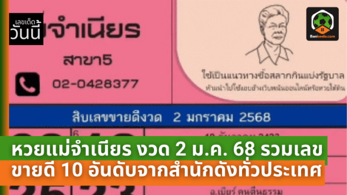 10 อันดับเลขขายดี หวยแม่จำเนียร งวด 2 มกราคม 2568