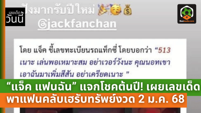 เรื่องราวเริ่มต้นจากหนุ่มแจ็คที่โพสต์สตอรี่อินสตาแกรมส่วนตัว jackfanchan หลังนั่งแท็กซี่กลับบ้าน โดยชี้เป้าหมายเลข “513” พร้อมข้อความติดตลกว่า “เล่นพ่อเหมาะสม อย่าเวอร์วังนะ!” ซึ่งกลายเป็นไวรัลในทันที หลังจากผลสลากกินแบ่งรัฐบาลออกมา ปรากฏว่าเลขท้าย “51” ของทะเบียนรถแท็กซี่ที่แจ็คใบ้ตรงกับรางวัลเลขท้ายสองตัว ทำเอาแฟน ๆ รับทรัพย์กันถ้วนหน้า